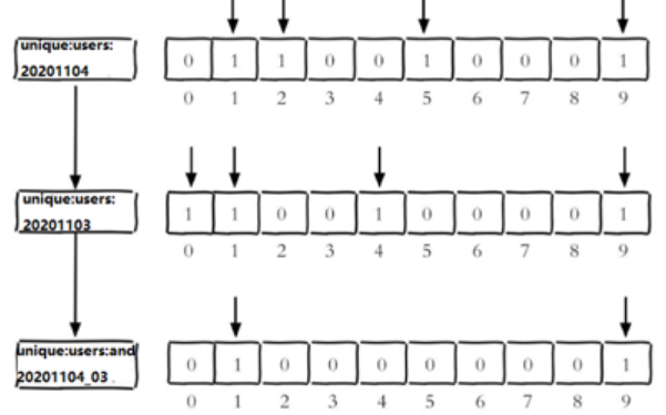 例如,把每个独立用户是否访问过网站存放在 Bitmaps 中, 将访问的用户记做1,没有访问的用户记做0,用偏移量作为用户的 id 。