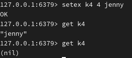 设置键 k4 的值为 jenny ,过期时间是4秒: