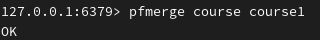 合并多个 HyperLogLog 结构,将多个集合的基数统计结果合并到一个集合中(将 course1 合并到 course ):