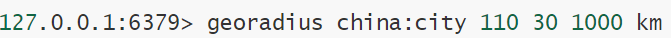 如获取经度为 110,纬度为 30,半径为 1000KM 的所有城市: