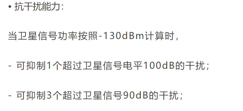经过 40 dB 的抑制,最终到达内部 GPS 接收机的残余干扰功率为: Pout=1W/10000=0.0001 W,用 dBm 表示的话,Pout=-10dBm。