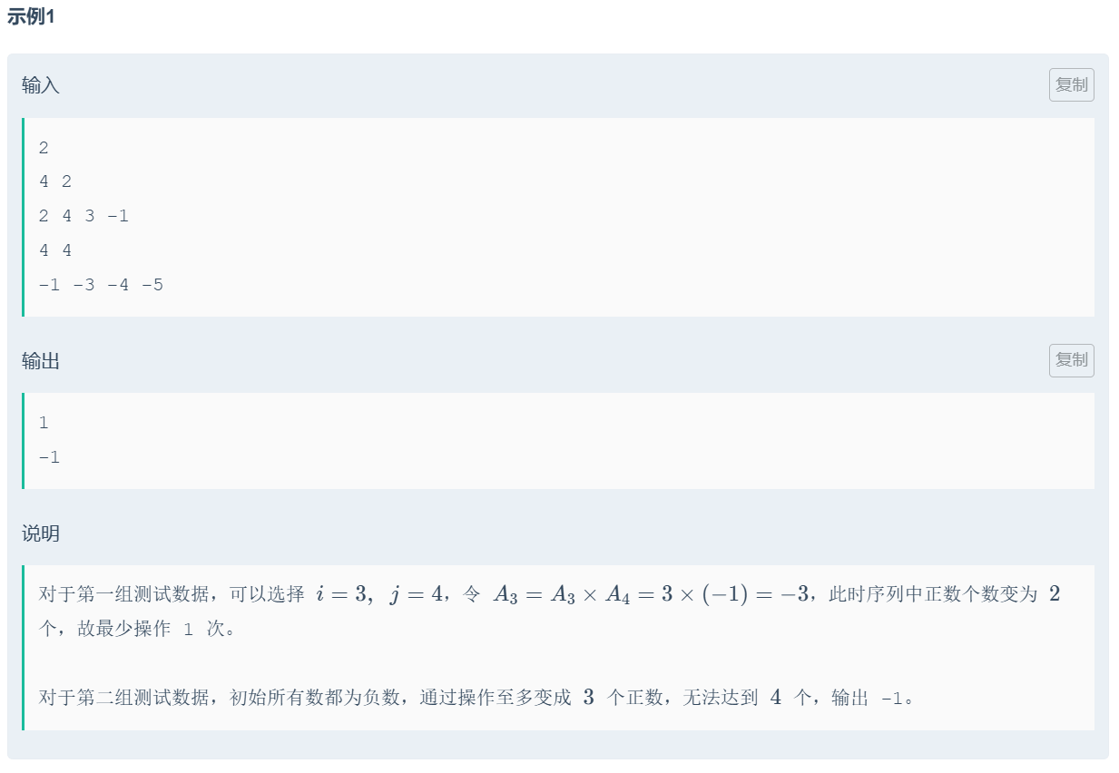 如果m的正数比正数的个数少,就输出差值的绝对值就可以了,因为想让正数的个数变少,直接正数和0相乘就可以了