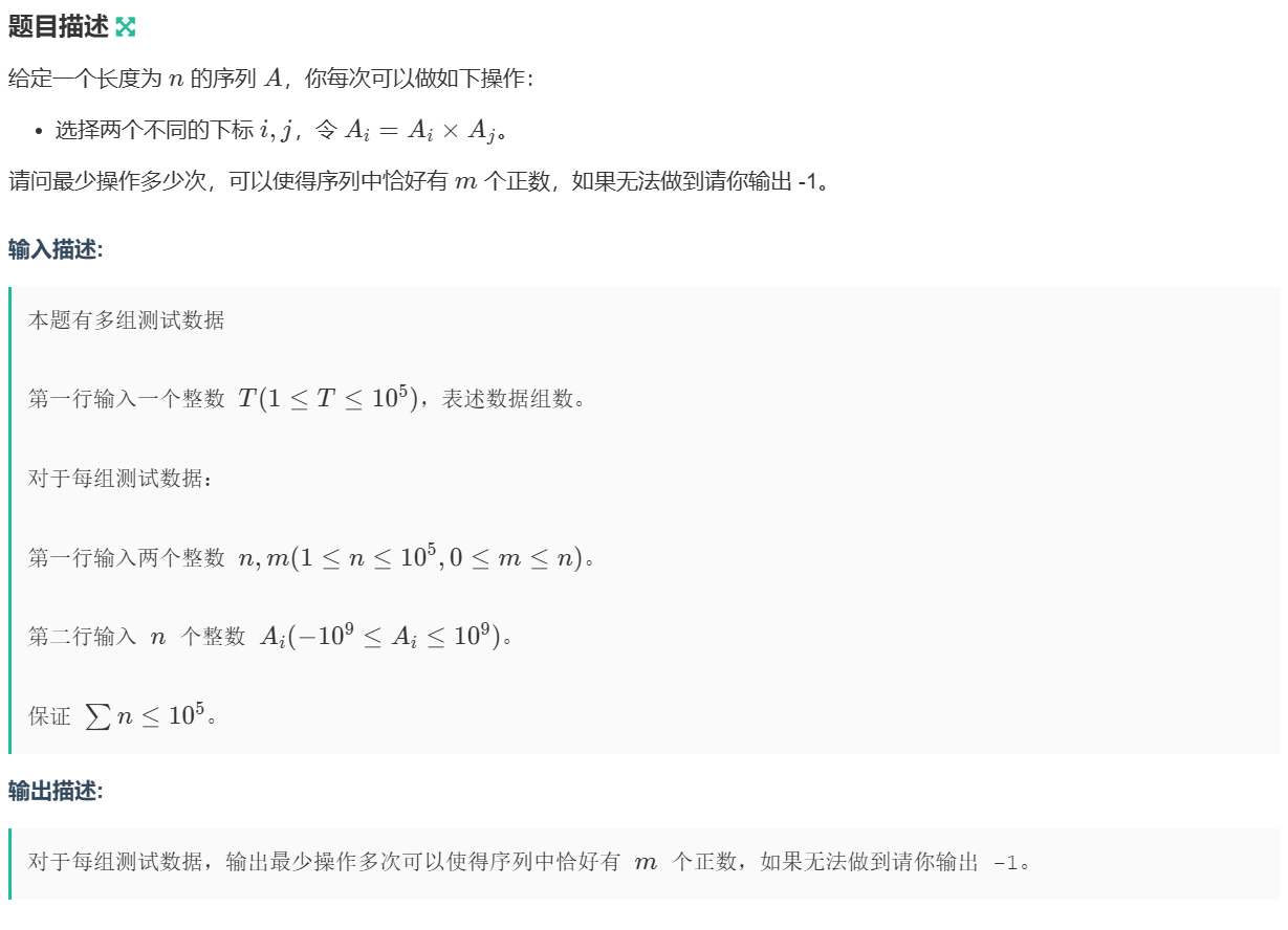 然后问你最少进行多少次操作可以让数组中正数的元素个数到达m个
