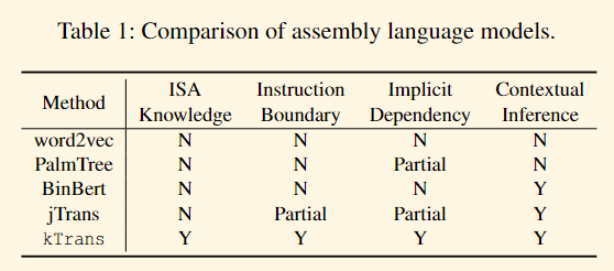 本文提出了kTrans,一种新型的基于Transformer的二进制代码嵌入方法。kTrans将汇编语言的先验知识融入到Transformer模型中,同时能够通过一种新颖的预训练任务建模指令之间的隐式依赖关系。