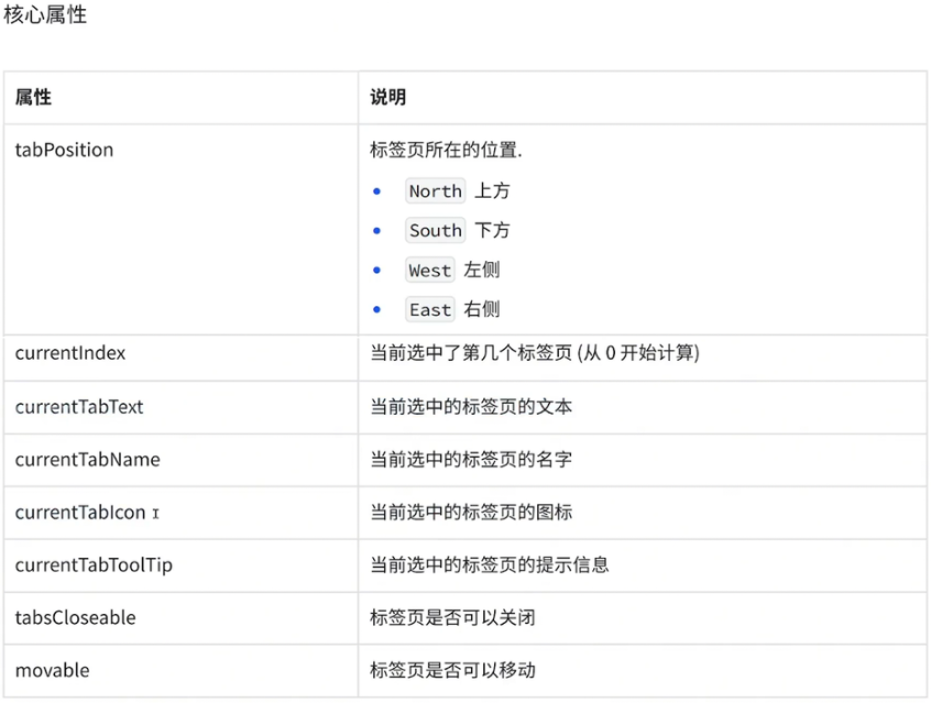 {// 使用 addTab 方法来创建新的标签页.// 参数1 要指定一个 QWidget.// 参数2 指定这个标签页的 text(标题), 此处标题就叫做 Tab + 数字int count = ui->tabWidget->count(); // 获取到标签页的数量QWidget* w = new QWidget();ui->tabWidget->addTab(w, QString("Tab ") + QString::number(count + 1));// 添加一个 QLabel 显示内容QLabel* label = new QLabel(w);label->setText(QString("标签页 ") + QString::number(count + 1));label->resize(100, 50);// 设置新标签页被选中ui->tabWidget->setCurrentIndex(count);