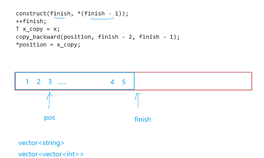 在开辟了新空间里之后,_start和_finish都指向了新的空间,但是此时pos还指向的是原来的旧 空间,但是此时旧空间已经释放,所以会造成pos为野指针