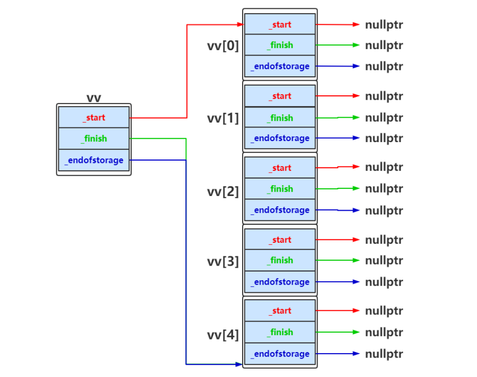 //.......private:_start = nullptr;_finish = nullptr;_end_of_storage = nullptr;