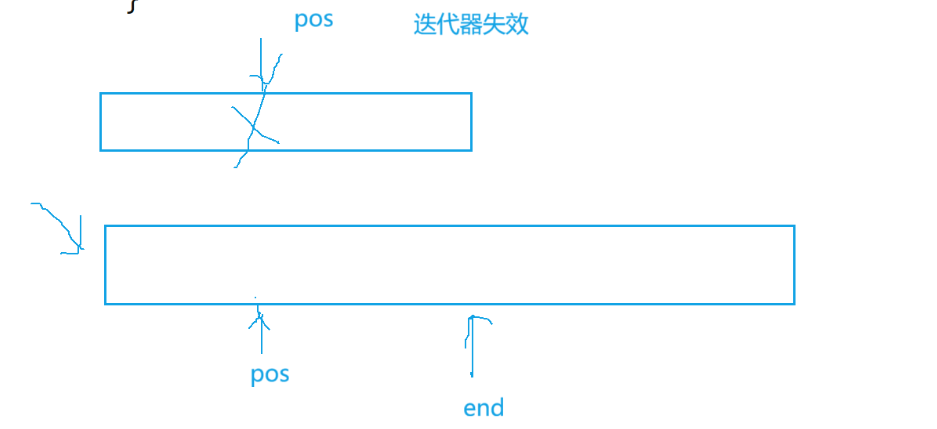 之后的所有迭代器失效由于pos