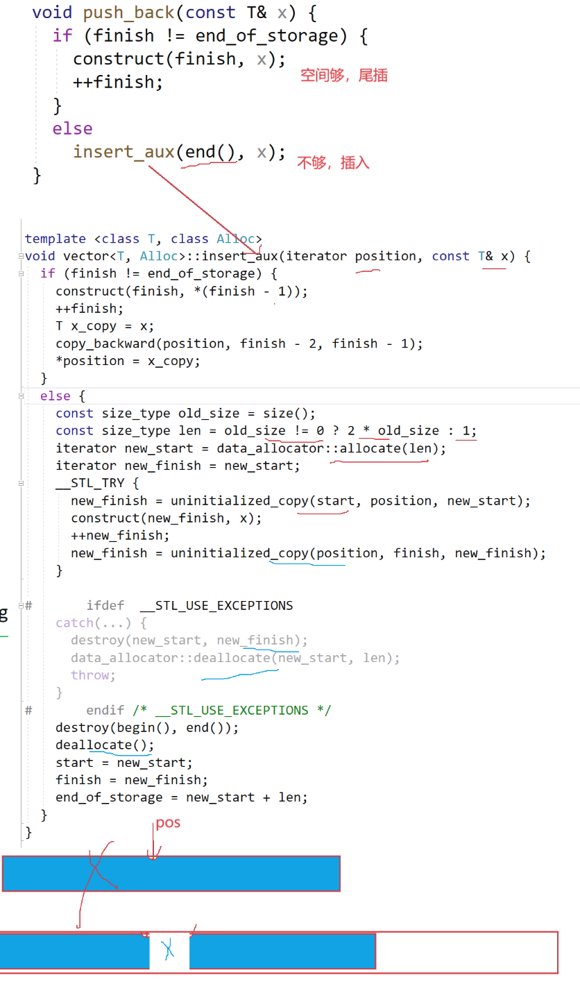 {if(_finsh == _end_ of_storage){reverse(capacity()==0 ? 4 : capacity()*2);}*_finish = x;++_finish;