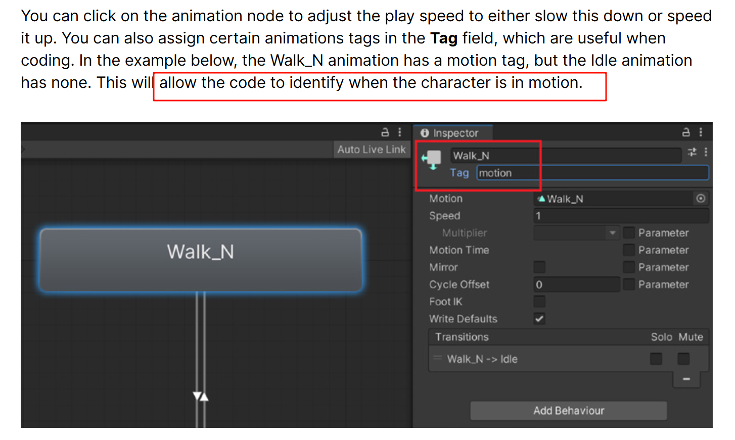 You can also assign certain animations tags in the Tag field, which are useful when