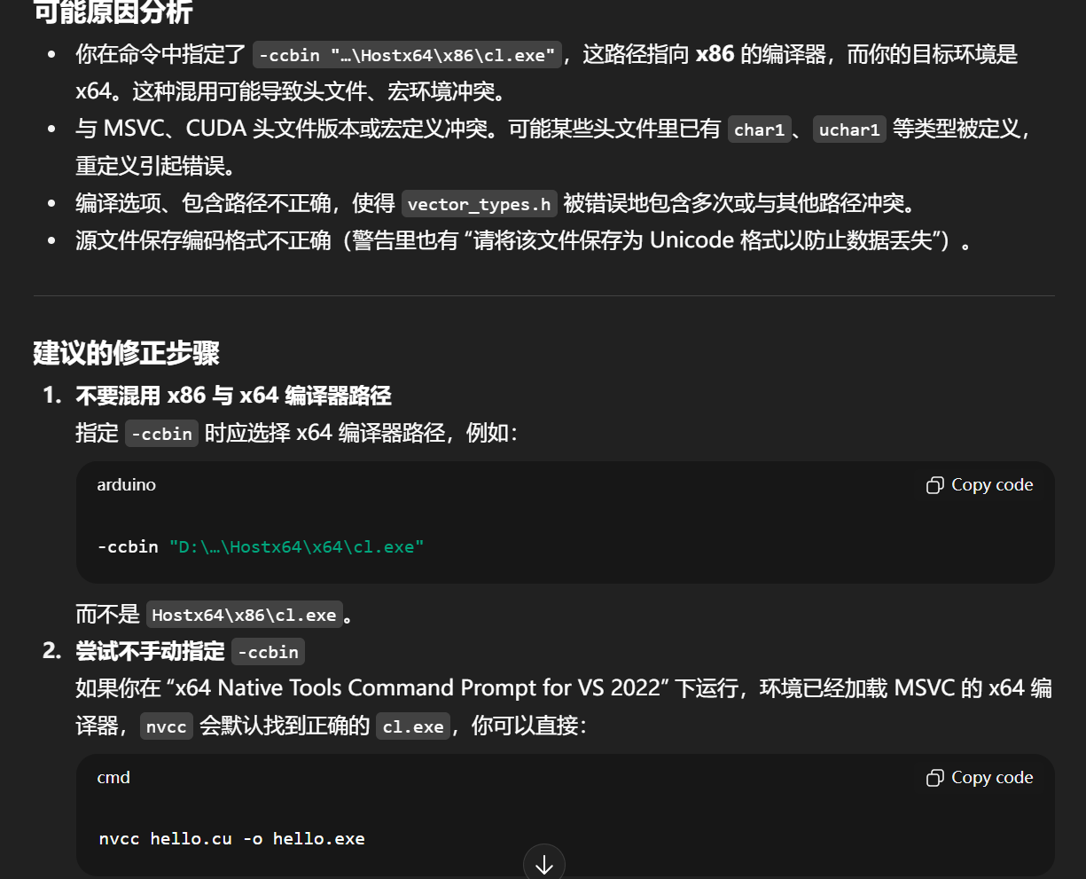 如果你希望 nvcc 使用特定版本的编译器,可以在命令行临时设置: