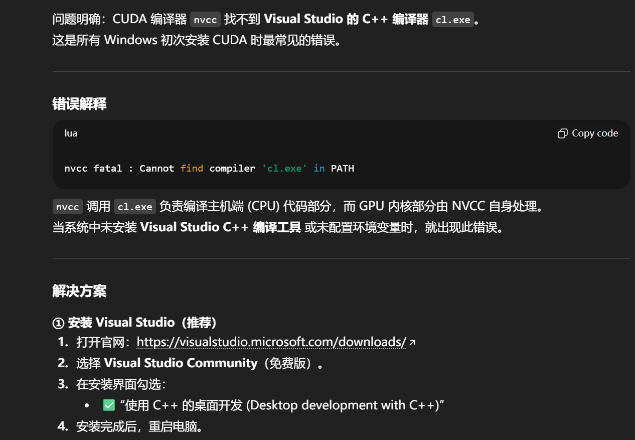 也就是说如果我修改了vs的安装路径,然后启动cuda的时候说找不到cl.exe,这个问题不是出在注册表上或者系统变量上,因为默认就是通过注册表查询的,和环境变量没有关系,我需要检查的是安装的c++sdk需要是windows11适配到自己的电脑