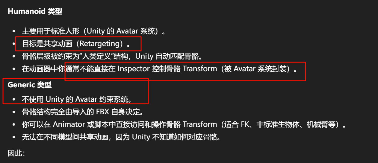 这种模式下,Unity 使用自己的 Humanoid Retargeting 系统,自动匹配标准部位。