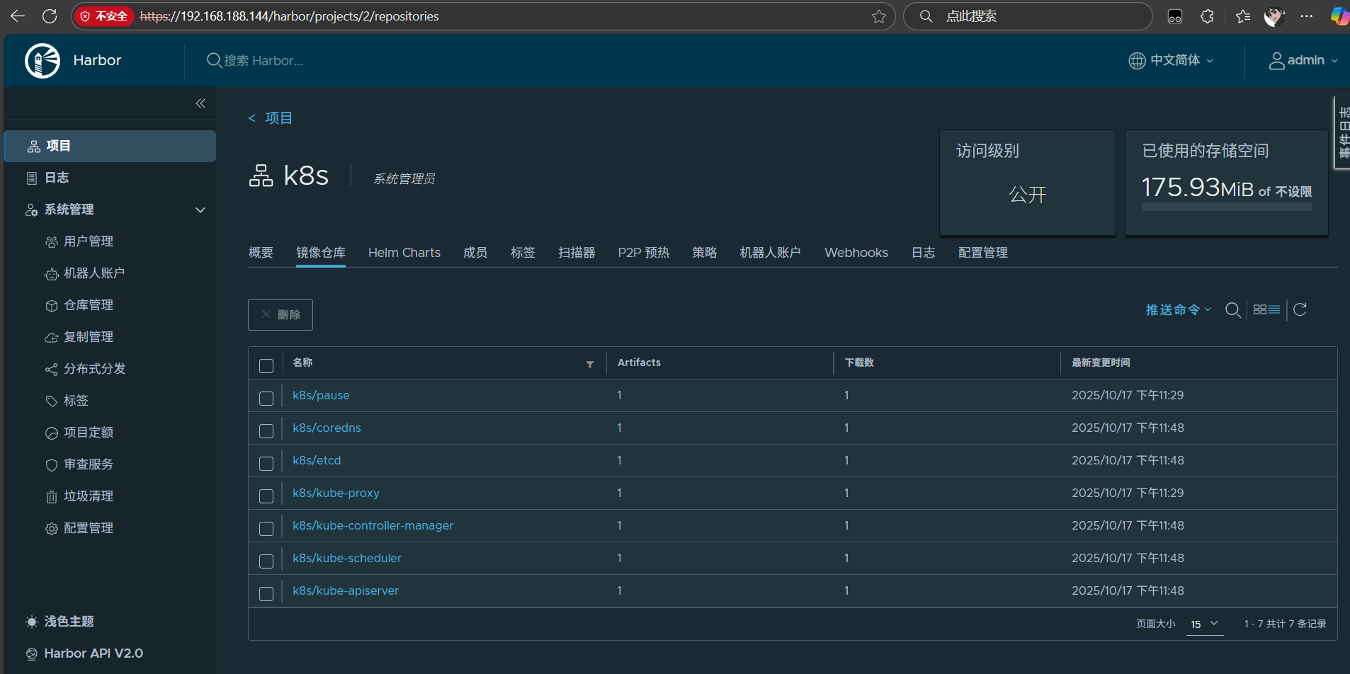 #拉取k8s集群所需要的镜像[root@k8s-master ~]# kubeadm config images pull \--image-repository registry.aliyuncs.com/google_containers \--kubernetes-version v1.30.0 \--cri-socket=unix:///var/run/cri-dockerd.sock#上传镜像到harbor仓库[root@master ~]# docker images | awk '/google/{ print $1":"$2}' \| awk -F "/" '{system("docker tag "$0" reg.timinglee.org/k8s/"$3)}'[root@master ~]# docker images | awk '/k8s/{system("docker push "$1":"$2)}'