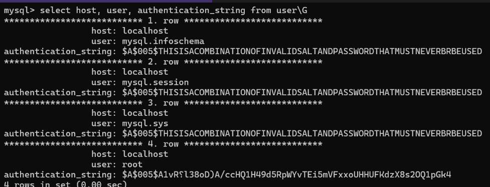 authentication_string: 加密后的⽤⼾密码