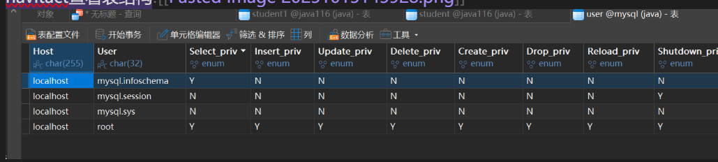 在mysql中如果对数据进行某些操作,必须添加一个用户,并对用户赋予相应的权限。