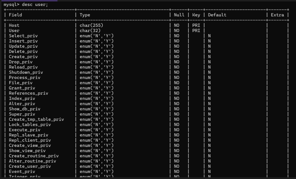 查看user表结构: