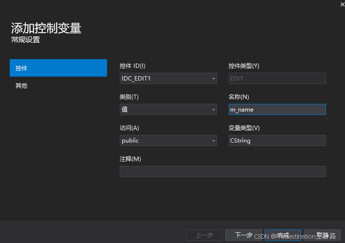 2.名字+Dlg.cpp文件初始化列表中进行初始化(做注释的两行,类型是控件的没有对值的初始化操作,直接进行的关联):
