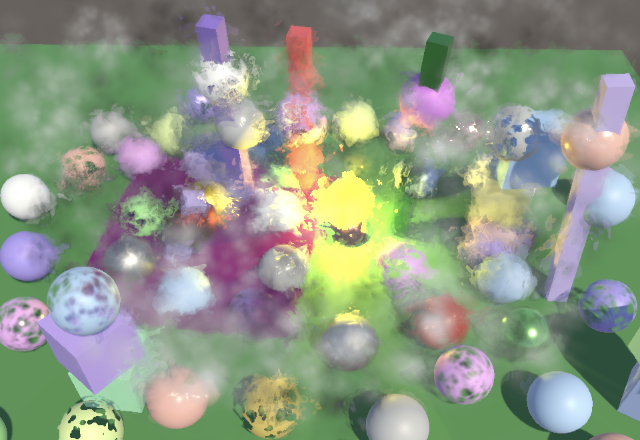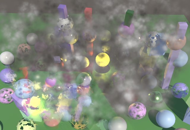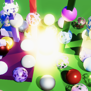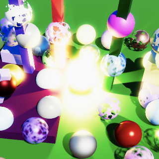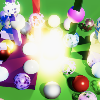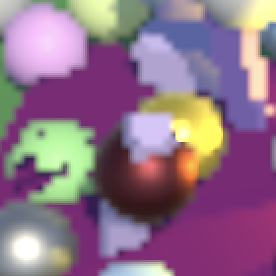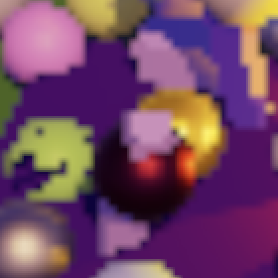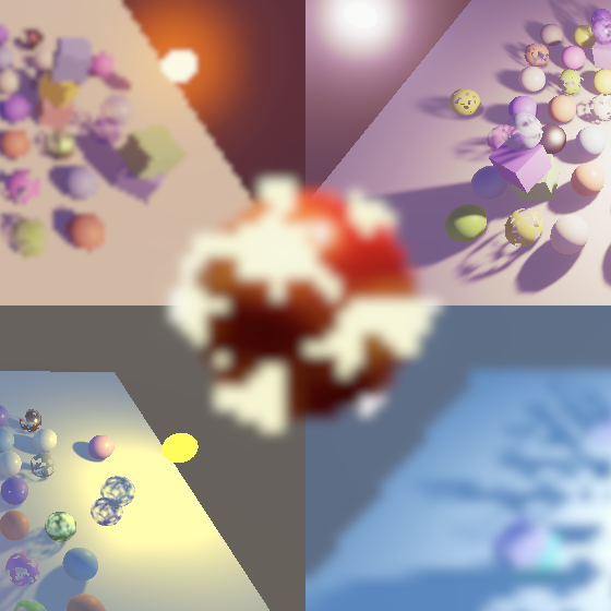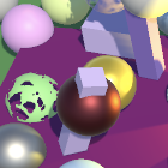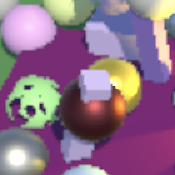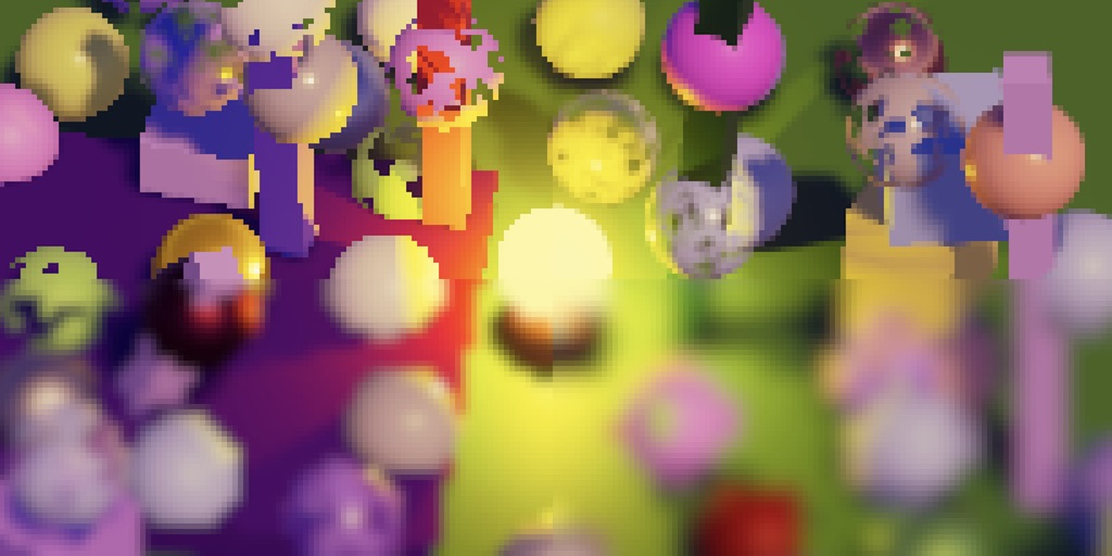 缩放到目标缓冲区尺寸的操作由最终绘制自动完成。最终我们得到的是简单的双线性上采样或下采样操作。唯一异常的结果涉及HDR值,这些值似乎破坏了插值效果。你可以在上面截图中黄色球体的高光部分看到这种情况。我们稍后会处理这个问题