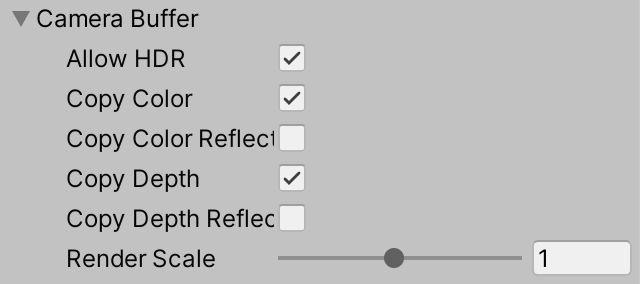 CameraBufferSettings cameraBuffer = new CameraBufferSettings {allowHDR = true,renderScale = 1f};