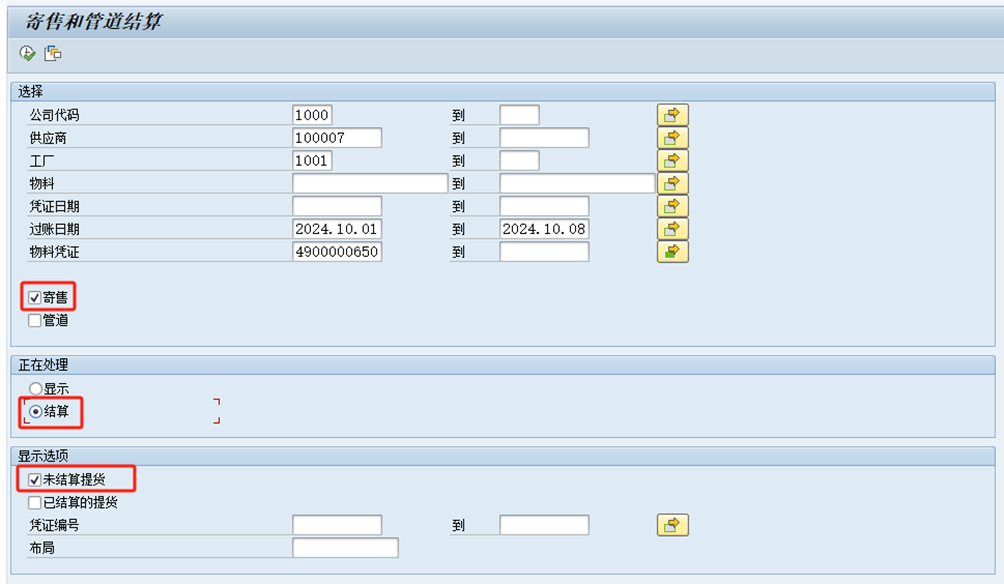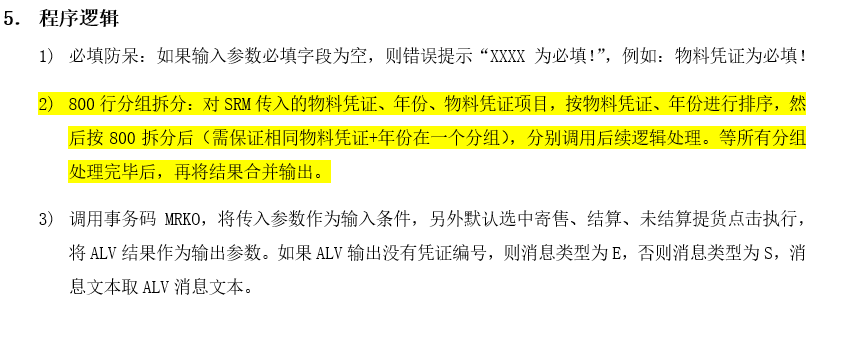 由于寄售发票校验没有标准的BAPI可以调用,本接口采用调用事务码MRKO处理,并由于会计凭证999行没有增强或OBCY能处理,只能在接口中进行了800行拆分(行数设置了配置表)。