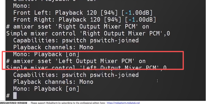 amixer sset 'Left Boost Mixer LINPUT1' on