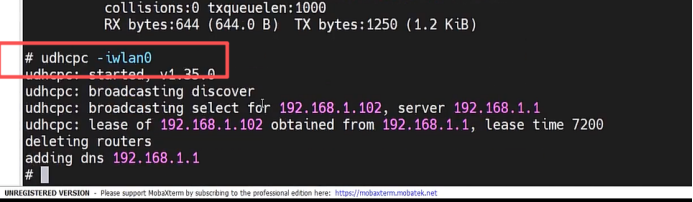 udhcpc: lease of 192.168.1.102 obtained from 192.168.1.1, lease time 7200