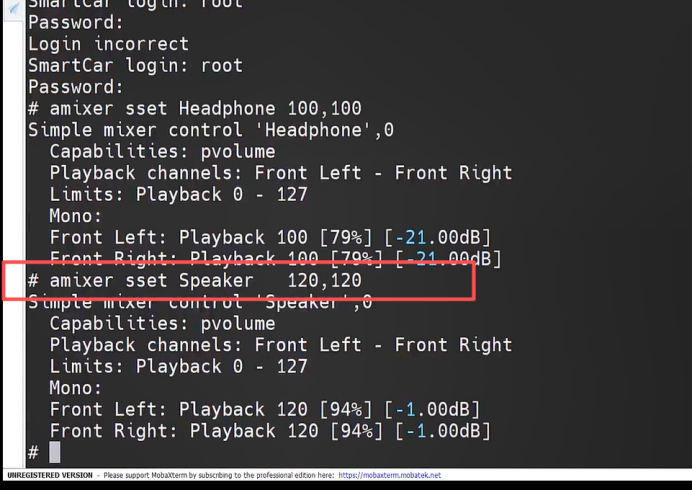 设置扬声器(喇叭)左声道和右声道声音大小(0-127)