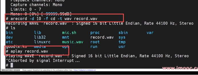 这条指令就是录制一段 cd 级别 10s 的 wav 音频,音频名字为 record.wav