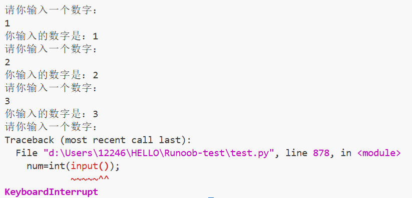 while 1:print("请你输入一个数字:")num=int(input());print(f"你输入的数字是:{num}");