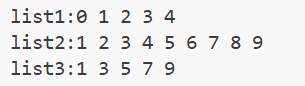 else:print("list2:",end="");for i in list2:if(i==list2[-1]):print(i);else:print(i,end=" ");else:print("list3:",end="");for i in list3:if(i==list3[-1]):print(i);else:print(i,end=" ");
