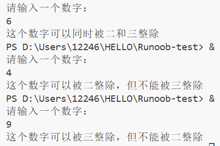 if number%2 ==0:if number%3 ==0:print("这个数字可以同时被二和三整除");else :print("这个数字可以被二整除,但不能被三整除");