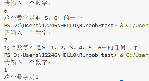 match number:case 0:print("这个数字是0");case 1:print("这个数字是1");case 2:print("这个数字是2");case 3:print("这个数字是3");case 4|5|6:#可以用|设置多个匹配条件。print("这个数字是4,5,6中的一个");case _:print("这个数字不是0,1,2,3,4,5,6中的任何一个");