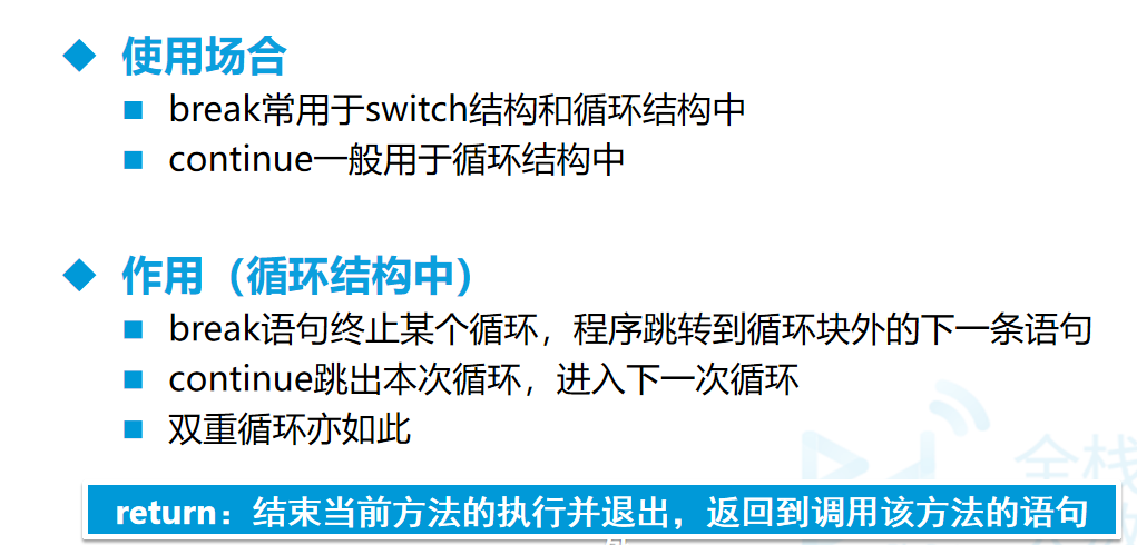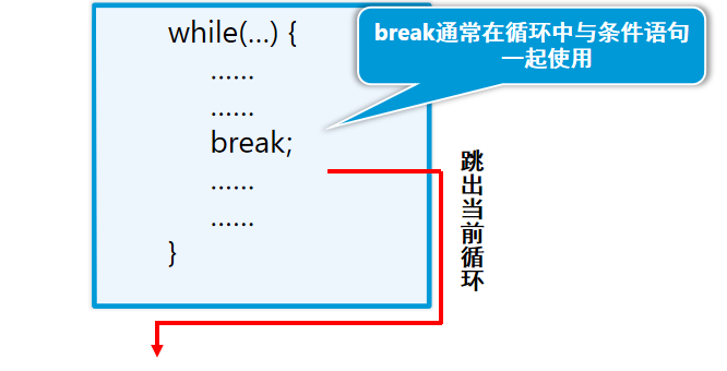 break语句语法:用于do-while、while、for循环中,可跳出循环而执行循环后面的语句