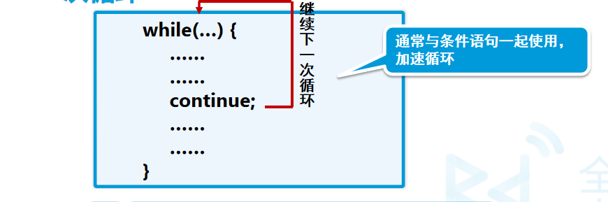 作用:跳过循环体中剩余的语句而执行下一次循环