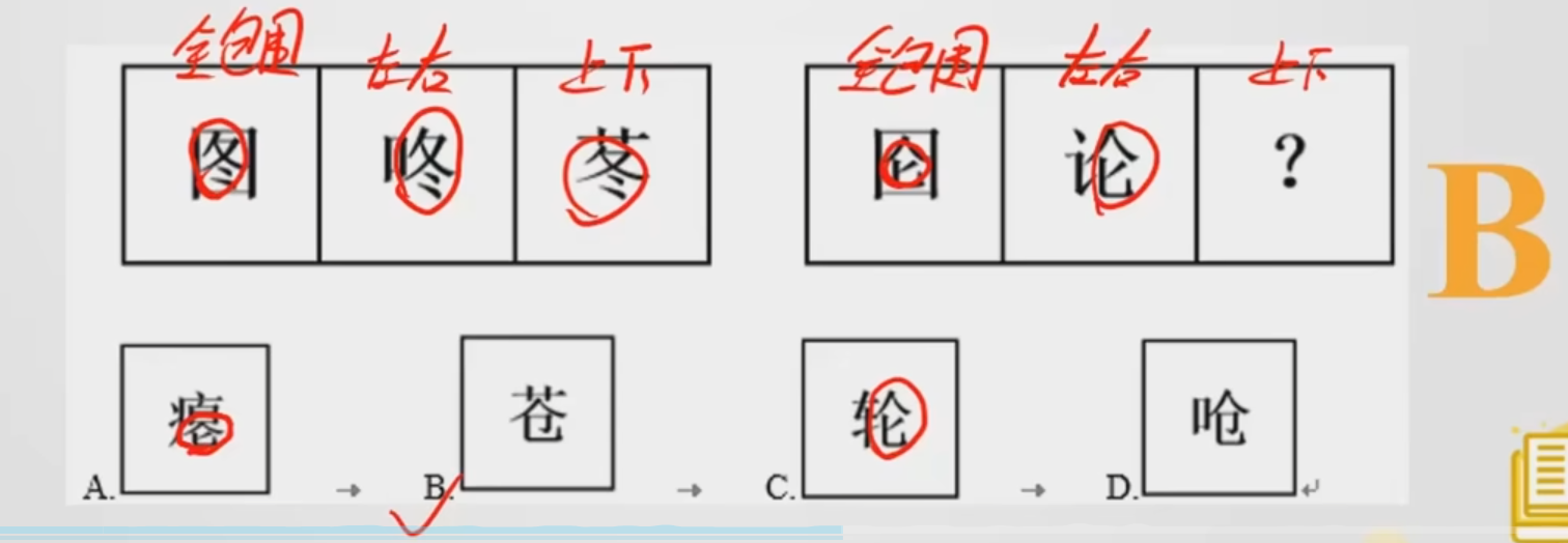 这题如果按照相同字 选择不出唯一答案 因此应该选上下结构 注意 瘪是半包围结构