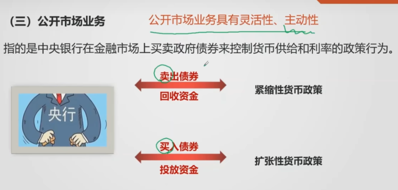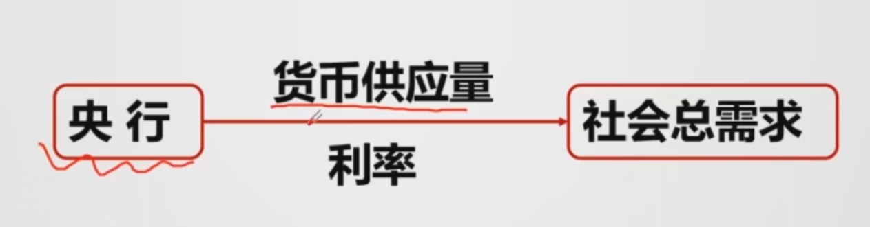货币政策 :央行操纵 央行调节社会总需求 经济繁荣时抑制社会总需求 萧条时刺激 通过货币供应量进而影响利率 进行社会总需求的调节 货币供应量 上升 是扩张性的货币政策 刺激社会总需求