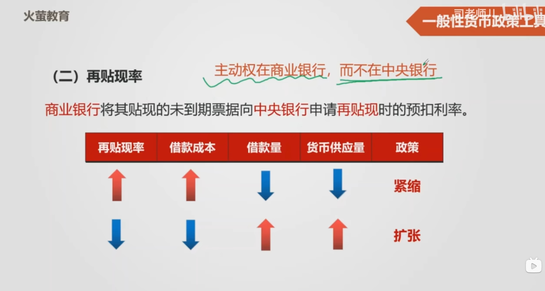 注意,再贴现率的高低主动权在商业银行 不在中央银行 因为 商行还可以选择转贴现