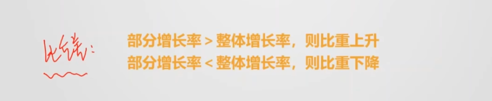 比重差: 部分占整体的比重 是上升还是下降(末期的比重跟初期的比重比)
