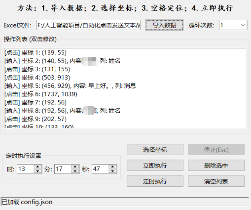 通过 坐标记录 + Excel数据驱动 + 定时执行 的方式,实现复杂自动化任务一键运行,无需手动重复操作。