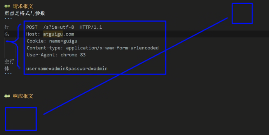 请求报文:(POST请求才有请求体,GET的请求体为空)