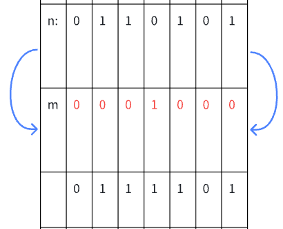 这是由于&的运算规则是有0则0,然而m的第x为恰好是0,这就可以保证当n&m的时候,这一位的结果肯定是0。