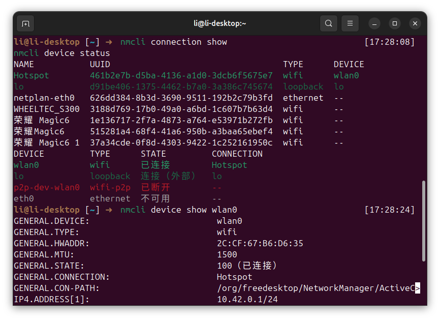 nmcli:因为我们使用networkmanager管理的wlan0端口