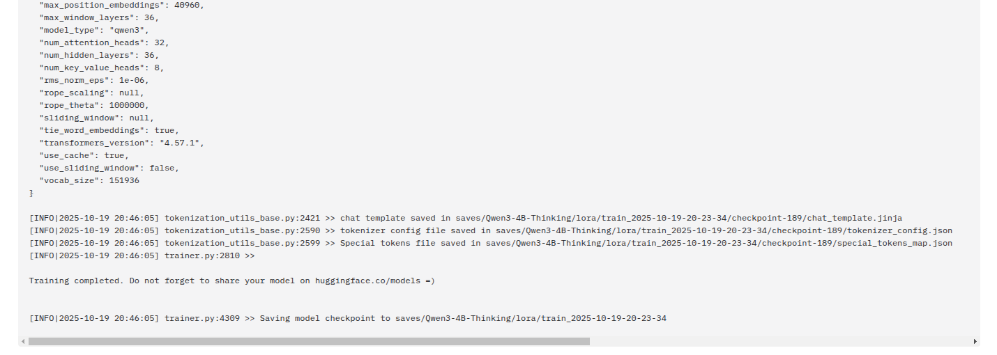 然后我们选择模型(Qwen3-4B-Thinking)、微调方法(lora)、训练方式(Supervised Fine-Tuning)监督微调