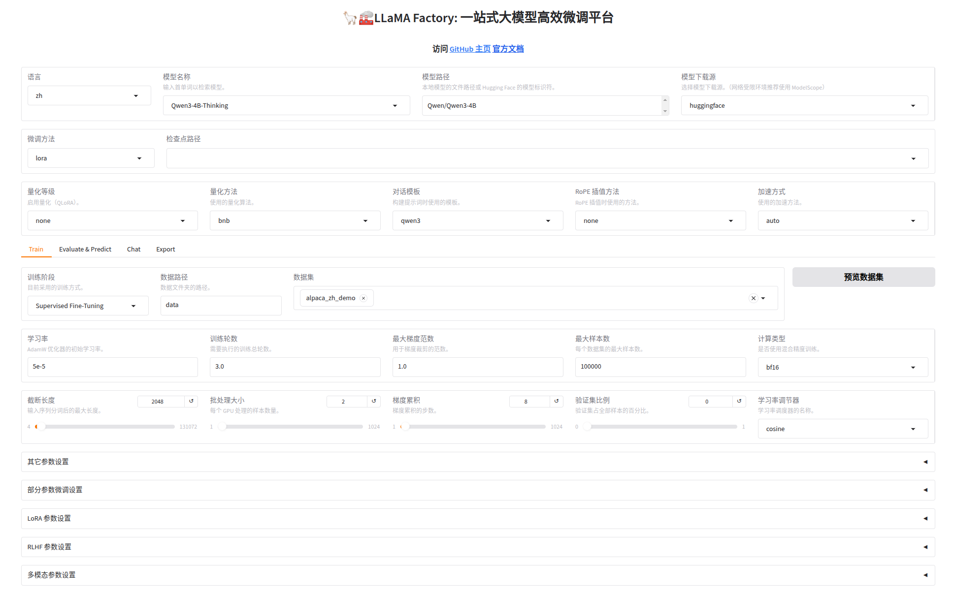 - 框架文档:https://llamafactory.readthedocs.io/zh-cn/latest/