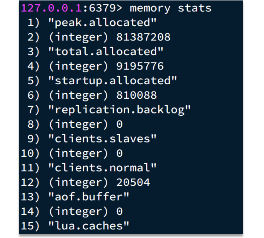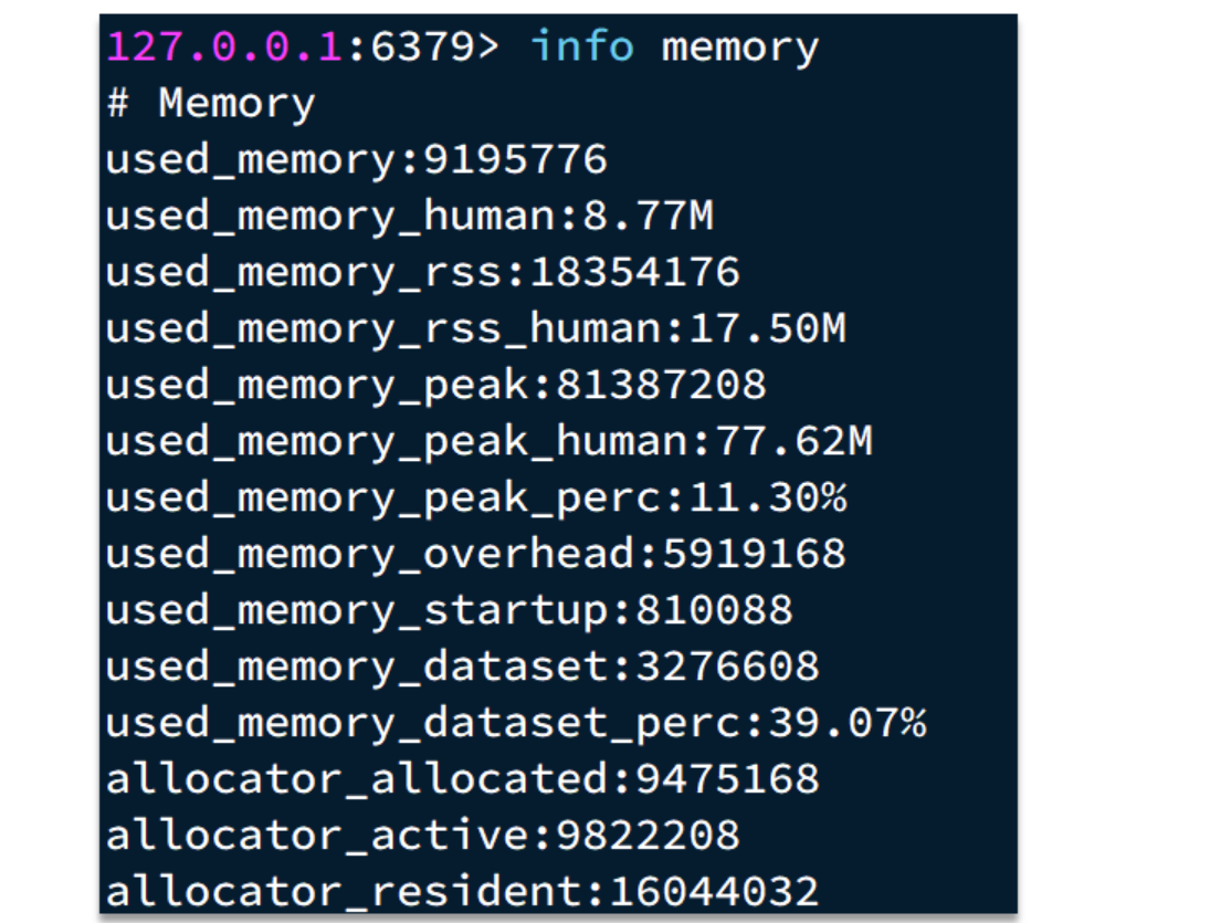 于是我们就需要通过一些命令,可以查看到Redis目前的内存分配状态: