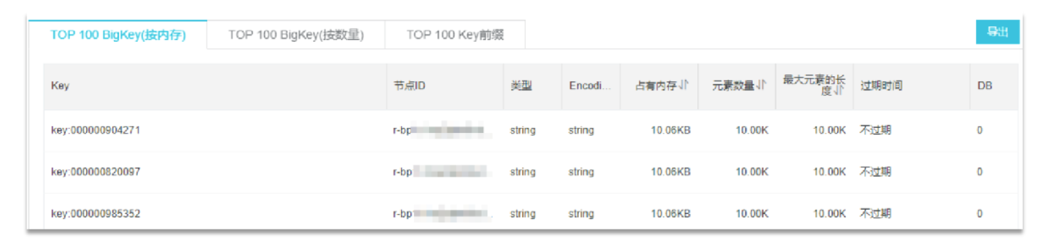 BigKey通常以Key的大小和Key中成员的数量来综合判定,例如:
