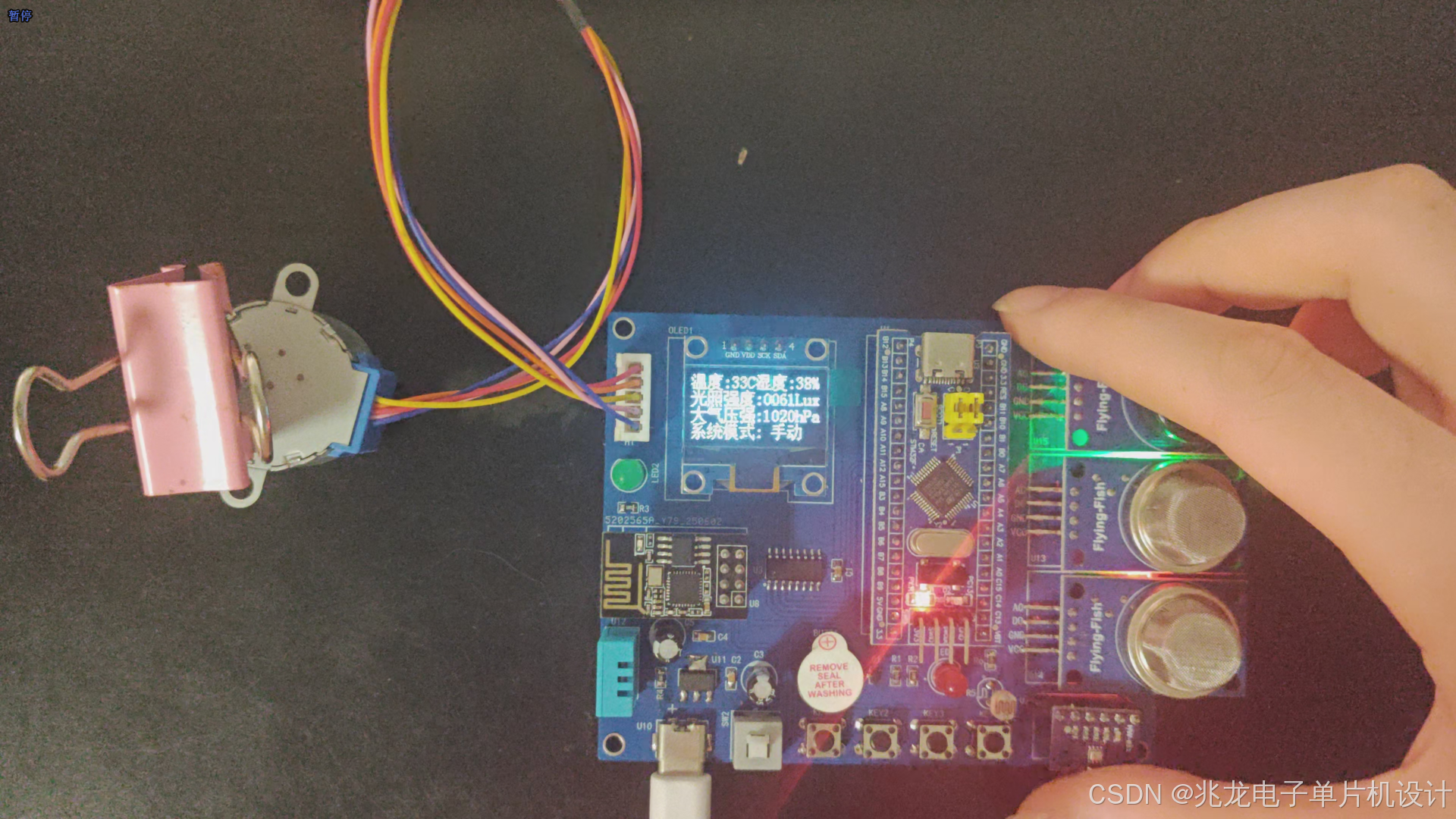 {//显示温度数据OLED_ShowNum(1, 6, sensorData.temp, 2);//显示湿度数据OLED_ShowNum(1, 14, sensorData.humi, 2);//显示光照强度数据OLED_ShowNum(2, 10, sensorData.lux, 4); //显示大气压强数据OLED_ShowNum(3, 10, 1020, 4);//显示系统状态数据if (!model){OLED_ShowChinese(4, 6, 36);OLED_ShowChinese(4, 7, 37); }else{OLED_ShowChinese(4, 6, 32);OLED_ShowChinese(4, 7, 33); }
