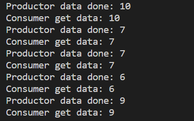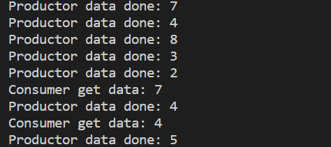 {ThreadData* td = static_cast<ThreadData*>(args);RingQueue<int>* rq = td->rq;std::string name = td->threadname;while(true){//获取数据int data = rand() % 10 + 1;//生产数据rq->Push(data);printf("Productor data done: %d who: %s\n", data, name.c_str());//cout << "Productor data done: " << data << " who: " << name << endl;}return nullptr;