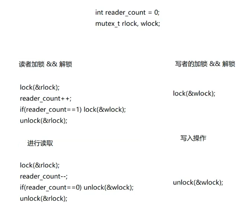 例如:读者优先的伪代码,理解读写锁的实现原理。